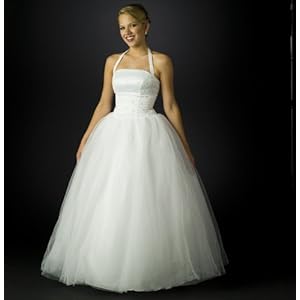 Stunning! White tulle ballgown with handbeading. Halter neckline. Princess skirt with layers of tulle and crinoline.